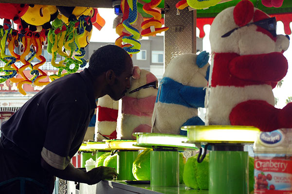 It took two days to set all the equipment up; then 3 days to disassemble. It is the carnival on the go. This travelling amusement park came into operation in 1984, serving different neighborhoods in the Los Angeles County for over 30 years. The new home to the park is a discarded construction site near the intersection of Hoover St. and Olympic Av. The ground was miry, and the control board was rusty. Nevertheless, people who work for the park and who play at the park always have a good time.