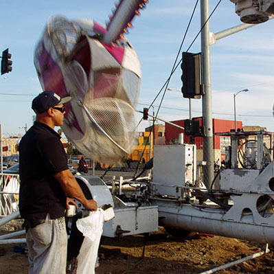 It took two days to set all the equipment up; then 3 days to disassemble. It is the carnival on the go. This travelling amusement park came into operation in 1984, serving different neighborhoods in the Los Angeles County for over 30 years. The new home to the park is a discarded construction site near the intersection of Hoover St. and Olympic Av. The ground was miry, and the control board was rusty. Nevertheless, people who work for the park and who play at the park always have a good time.